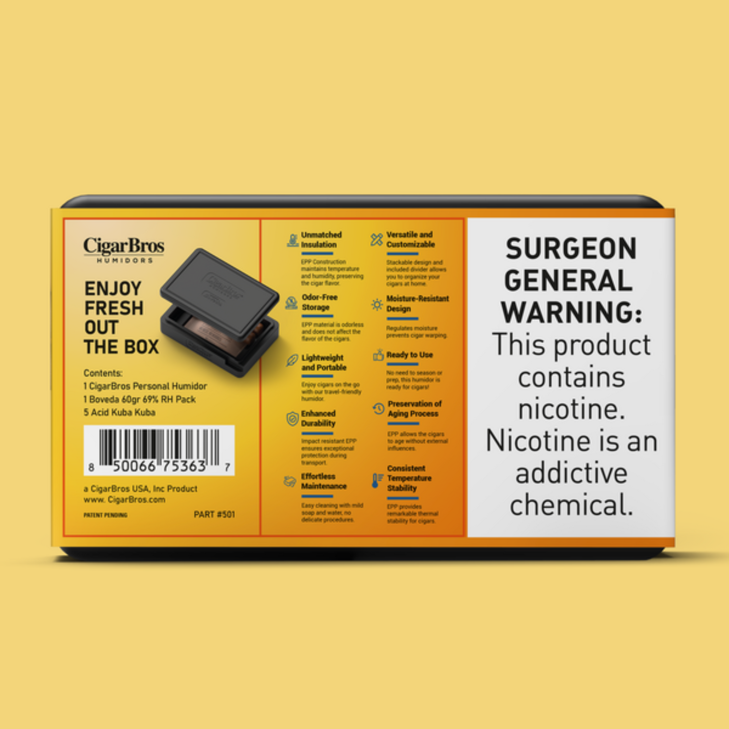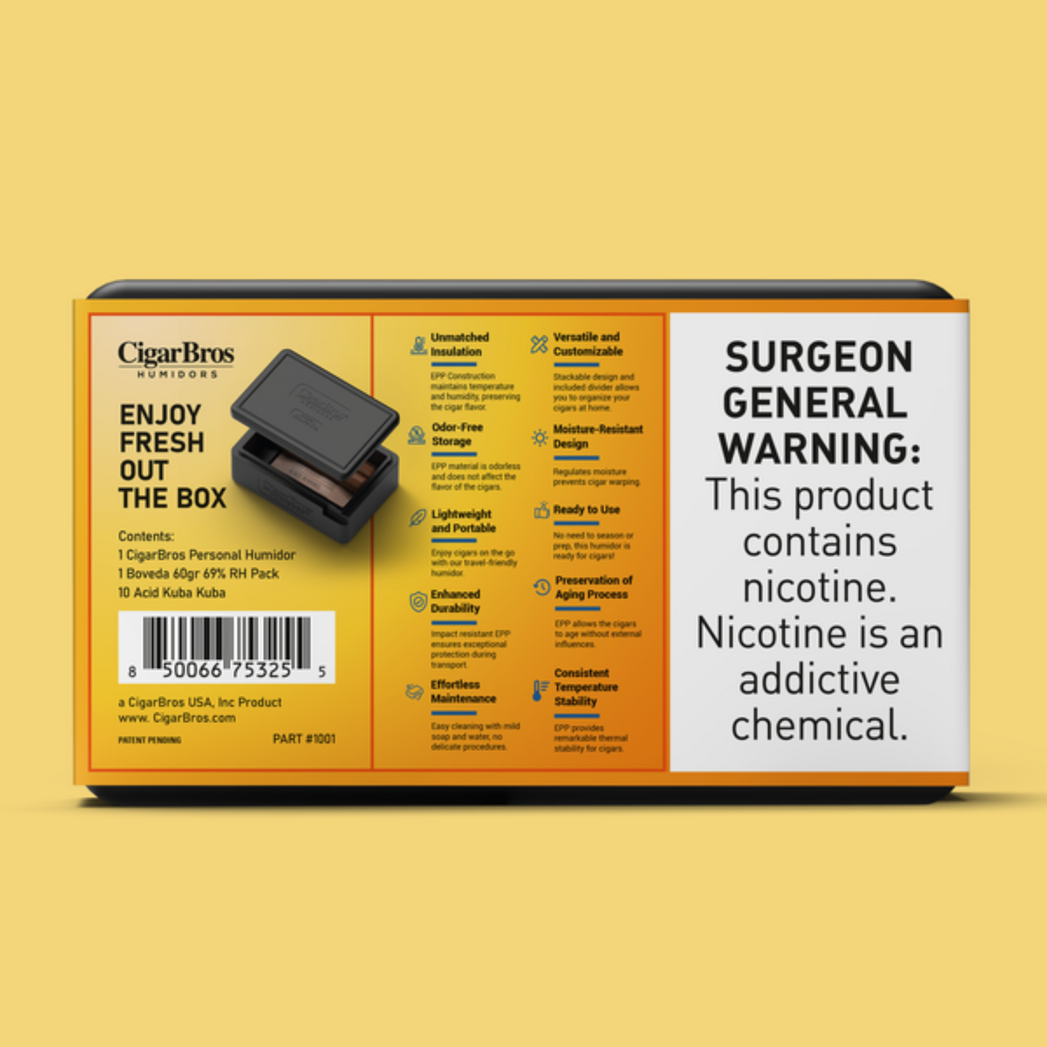 Enhancing this premium cigar experience is the CigarBros Personal Humidor, included with select sets. This sleek, travel-ready humidor ensures your cigars remain in peak condition—fresh, flavorful, and ready to enjoy anytime, anywhere.