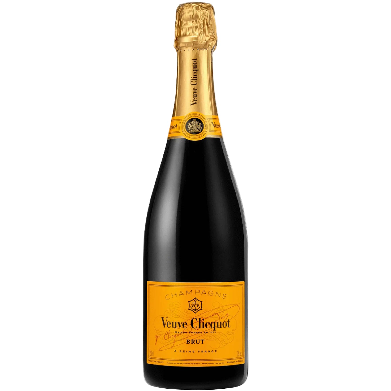 Veuve Clicquot Champagne Brut Yellow Label is the House’s most emblematic cuvée — a benchmark expression of the Veuve Clicquot style, defined by its perfect balance of freshness, strength, aromatic richness, and silkiness. Crafted through precise blending dominated by Pinot Noir, complemented by Meunier for roundness and Chardonnay for elegance, Yellow Label is both timeless and unmistakably vibrant. The use of up to 45% reserve wines, sourced from one of the largest and most diverse collections in Champagne, ensures consistency and depth year after year.